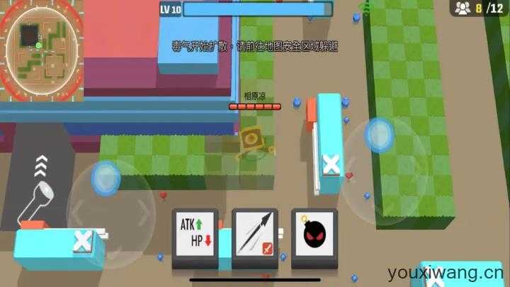 2、左侧摇杆控制移动,拾取场景中的水晶即可获得经验,提升等级。