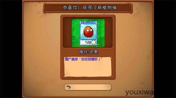 1、游戏中的所有植物都将通过抽卡来获得,每次通关都会随机获得一张卡牌来挑战下一关。