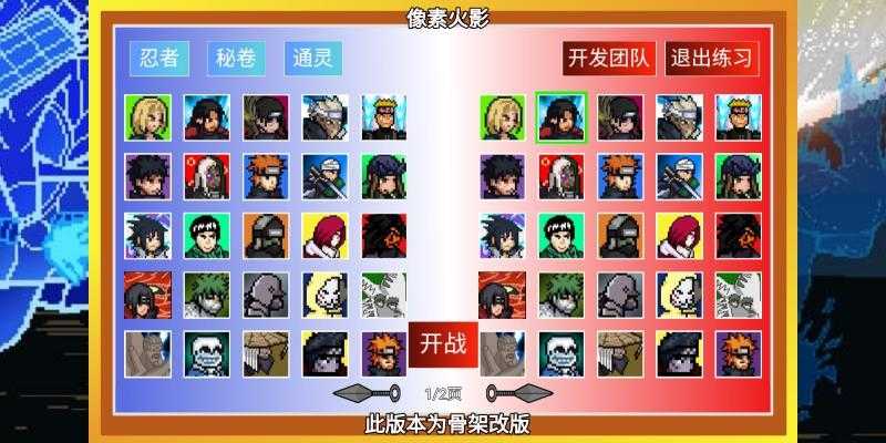 像素火影骨架改版,由玩家根据鼬神制作的像素火影而改编的魔改版本,在此版本中对众多忍者进行加强,加入许多有意思的机制,让你体验到不一样的爽感!例如骨架就增加了亿点点伤害,能够一击秒杀任何!又或者是无限火力的秽土水门,秽土转生无限查克拉,无限放技能也非常合理吧!除此之外,还有很多有意思的改动,欢迎大家前来体验!