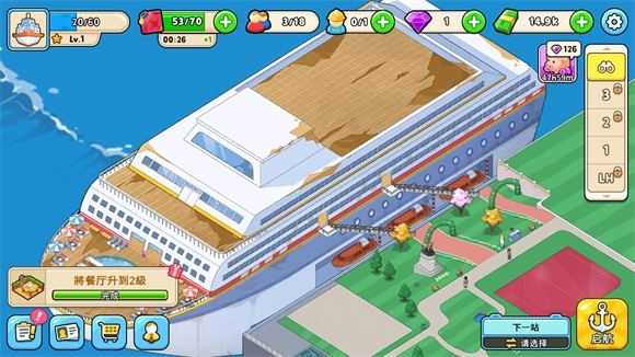 6、不断获胜更多的金币来修复游轮的其他区域,吸引更多的顾客来打造最棒的豪华游轮。