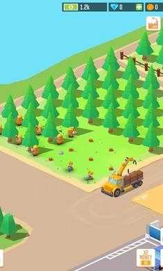 3、雇佣完工人后需要解锁运输方式,点击右上角的按钮可以解锁卡车运输木材。