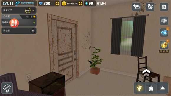 1、首先开始第一个任务,清扫房间,点击右下角的工具,切换到扫帚。