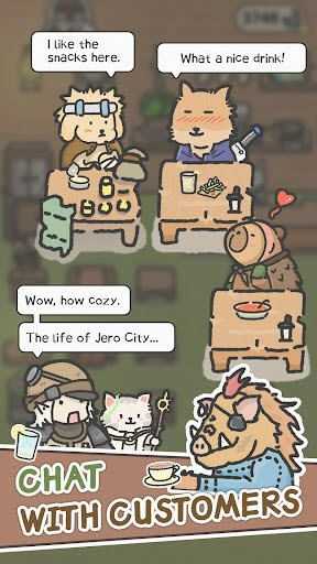 与喜欢在您店里喝酒的顾客聊天,解锁独特的情节。有时,他们会给你留下游戏提示,并送你免费物品。聆听他们的故事,了解更多发生在 Jero City 的事情!与动物朋友猫牧师、熊警卫和钓鱼卡皮巴拉见面。