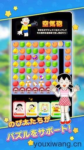 哆啦A梦Puzzle是一款基于经典动漫哆啦A梦开发的三消益智游戏。这款游戏将玩家带入一个全新的原创故事,其中大雄和哆啦A梦在无人岛上的冒险经历构成了游戏的主线。