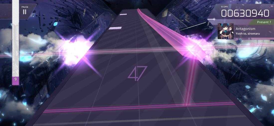 4、首先是基础的通关判定,屏幕左侧的回忆收集条满70%时即可通关,在游玩过程中第一次收集满70%时会有哐当一声的音效。不同人物技能可改变通关难度。以初始光为例,其技能为“简单”,可以减少lost时丢失的回忆收集率,使用她时通关判定即为Easy Clear(绿C)。初始对立无技能,那么使用她时通关判定便为Normal Clear(紫C)。而比较特殊的是拥有“困难”技能的角色,例如伞对立,回忆条开局便是满的,在变为0时会强制中止游戏,可以理解为ll、邦邦等游戏内的“血条”。使用拥有这类技能的角色通关时判定为Hard Clear(红C)。值得注意的是Hard Clear只要回忆率大于0即可获得。Full Recall(字母F),即一般音游中说的fc,达成条件为无lost。Pure Memory(字母P)是需要在fc的情况下达成无far(可以理解为一般音游中的great或good)全pure(即perfect)。