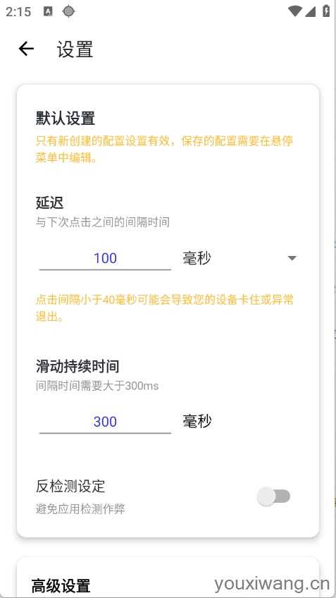 1、当设置小于40毫秒的间隔时,它往往会崩溃。我们建议您在短时间内快速点击。