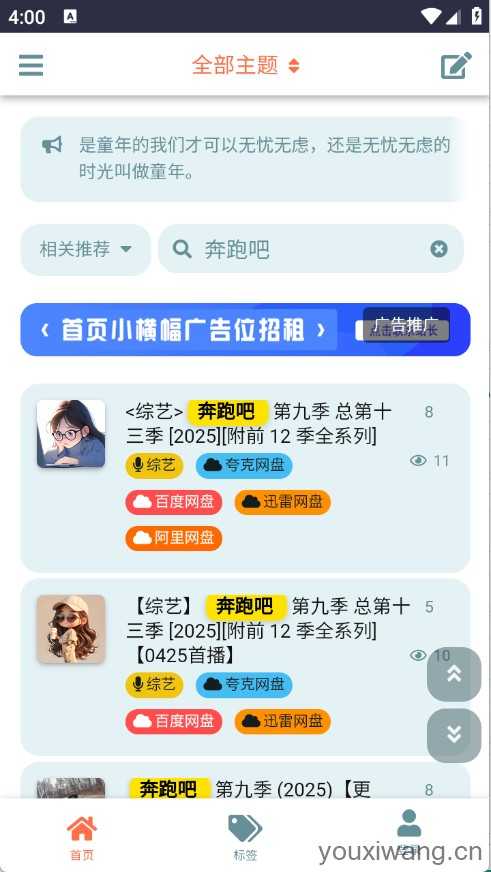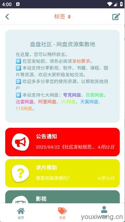 盘盘资源社,快速搜索想要的资源,不管是想要搜索影视、音乐以及小说等都是可以的,支持多个网盘搜索,包括夸克网盘、阿里网盘以及迅雷网盘等都是可以的,资源很全面,快速搜索到想要的资源。