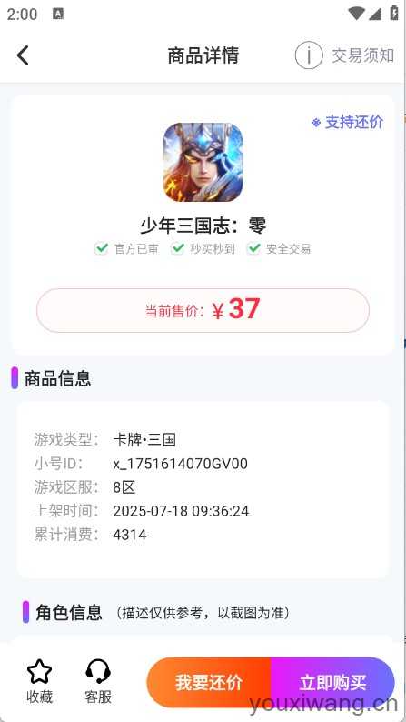 2、提供免费的账号估价服务,帮助玩家了解账号的市场价值,避免踩坑。