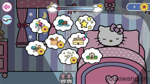 1、有多个凯蒂猫角色可以选择,每一位角色都需要你去帮助入睡。