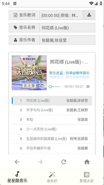 星星酷工具箱,主要是包含了音乐、去水印以及影视大全三个板块,可以搜索想听的音乐或者想看的影视,所有的资源都是免费的,满足大家的听歌以及追剧需求,各种资源一应俱全。