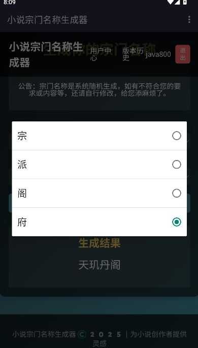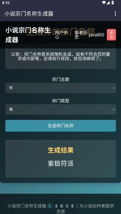 3、:提供大量随机生成的宗门名称,满足多样化的需求,为作者提供丰富的灵感来源。