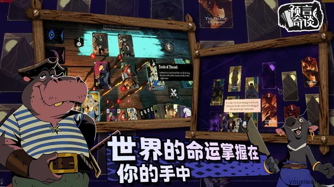 预言奇谈,用卡牌叙述故事的游戏,玩家将作为拥有预言能力的主角来拯救世界。在预言奇谈里玩家需要用卡牌来推动剧情,通过打出不同的卡牌来完成目标,做出你的选择来体验不同的剧情,运用各种计谋与策略来完成你的目标,不断和伙伴们一同冒险来解决世界末日的危机。