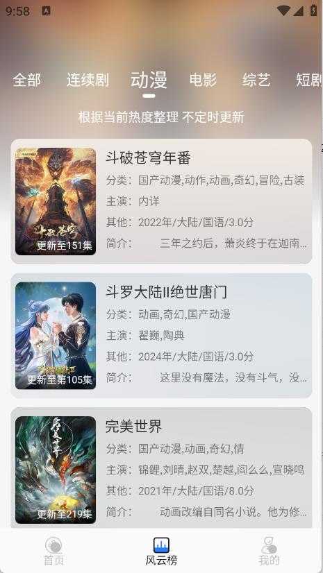 3、排行榜页面主要是根据当前热度将影视进行排序。