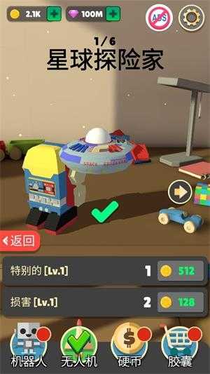5、在主界面点击机器人按钮可以更换配件,还可以消耗金币对机器人进行升级。