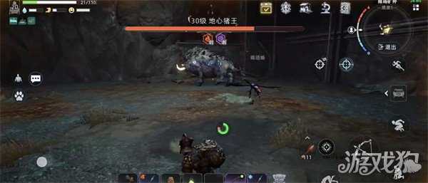 进去以后就能看到30级的boss地心猪王了,这里大家要注意隐匿突袭这个人物天赋要用上,这个天赋在没有仇恨的时候,只要蹲下进行的第一下攻击能够打出百分百的暴击,开启战斗时,玩家先蓄力一下,平A两下跳起来就能直接把猪王的第一次冲锋给躲过去。