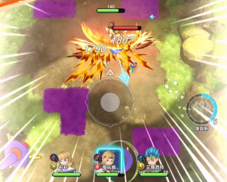 然而令笔者意外的是,尽管操作简单但只要角色数值没有大幅领先关卡,难度其实并不低,怪物会积极地攻击,玩家需要频繁走位来闪躲招式并抓准空档反击,Boss 甚至会施放弹幕攻击或召唤大量小怪,也因此虽然游戏内建了自动战斗功能。