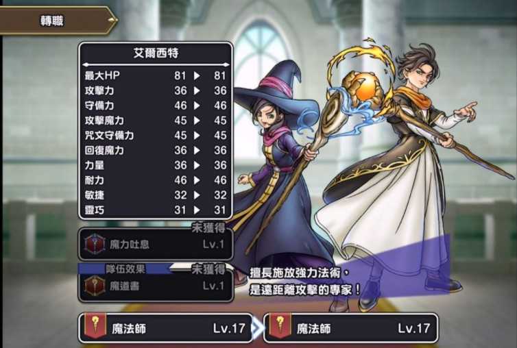 《勇者斗恶龙》系列深厚的 RPG 养成要素在本作中也展露无遗,玩家的初始职业为战士,随著游戏进展可以解锁转职,让角色转职为魔法师、武斗家等系列经典职业,每个职业都有其擅长的武器与专属特性,虽然切换职业本身没有限制,但各职业的等级是独立计算的,这也意味著每次转职后,都需要花费一番心力重新锻鍊才能上场。