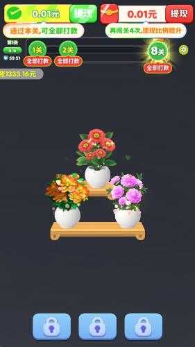 花开大吉,带你一起欣赏各种美丽花朵的趣味消除闯关游戏。在游戏中,我们将会看到五颜六色放在花瓶中的美丽花朵,需要通过移动来让同样的三朵花放在同一花瓶中,直至所有花朵消除完,这样就能够顺利过关获得奖励了。没完成一次消除,都仿佛完成了一幅插花作品一般,在过关后还会以最漂亮的形式呈现出来,带来超棒的视觉体验!