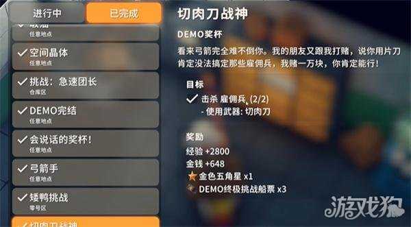 3、完成任务“切肉刀战神”后,可以获得三张demo终极挑战船票。