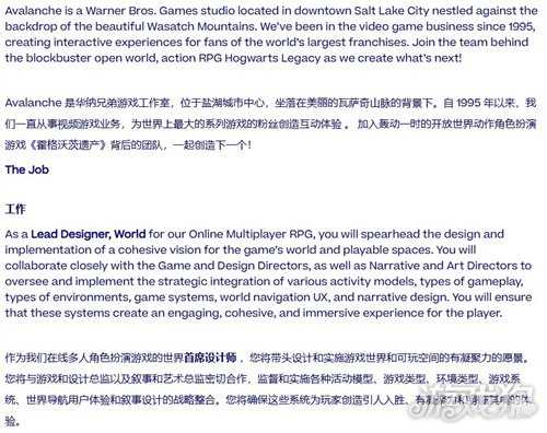 此前招聘公告已透露《霍格沃茨之遗》续作可能成为实时服务游戏的潜质。虽然尚未获得官方确认,但Avalanche持续发布的“多人在线角色扮演游戏”招聘帖中,多次出现与魔法世界直接相关的职位描述,最新招聘信息再次延续了这一特点。